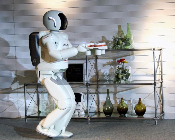 本世紀(jì)初,日本本田公司發(fā)布一款酷似太空宇航員的人形機(jī)器人ASIMO(阿西莫),能上下樓梯,聽懂語音指令。2013年美國波士頓動力公司發(fā)布的人形機(jī)器人Atlas在跑步機(jī)上健步如飛,還能跳躍、旋轉(zhuǎn)、翻滾等,它為災(zāi)難現(xiàn)場而設(shè)計(jì),目標(biāo)是在化學(xué)泄漏、建筑倒塌等危險區(qū)域替代人類完成開關(guān)閥門、搬運(yùn)等任務(wù)。