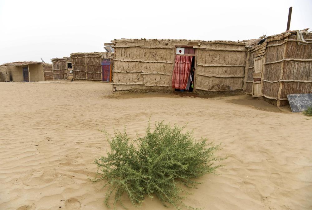 新疆于田縣達(dá)里雅布依鄉(xiāng)新村“藏身”于這片沙海。民房齊整氣派,不遠(yuǎn)處就是高大延綿的沙丘。