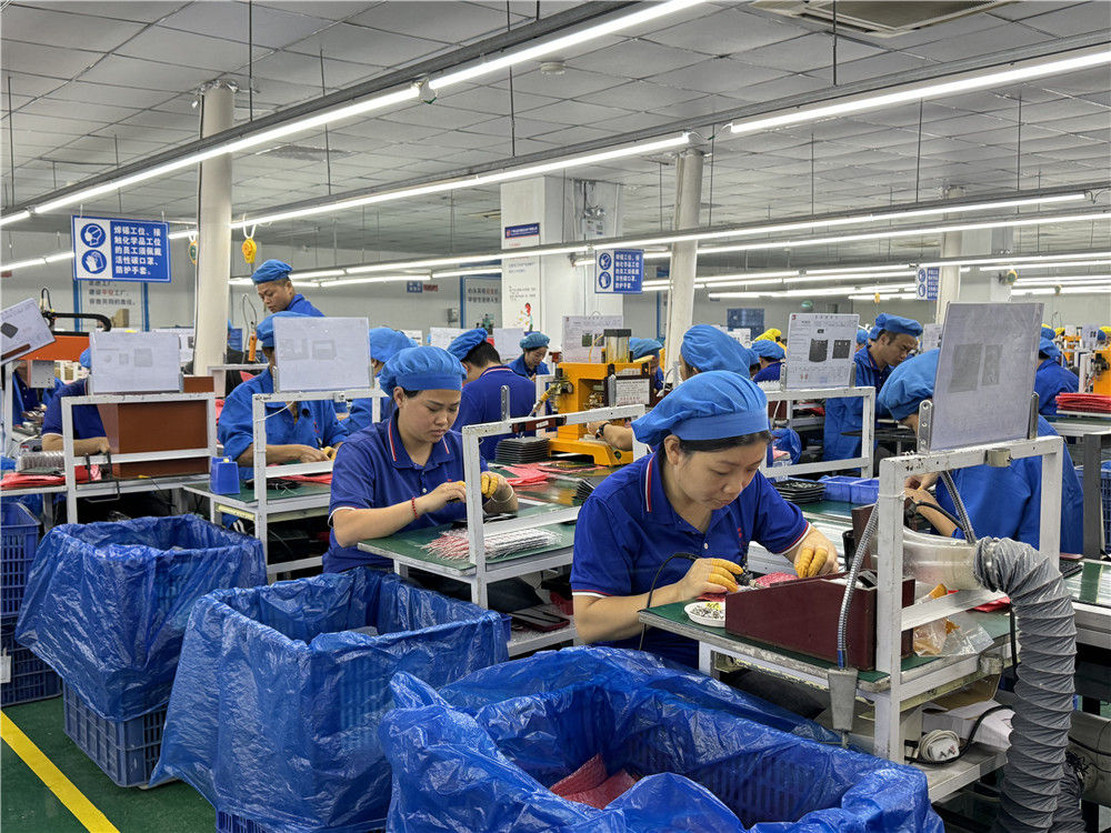 工人在廣西北流泰宏達(dá)電子有限公司車(chē)間內(nèi)忙碌(2024年12月9日攝)。新華社發(fā)(李洪健 攝)