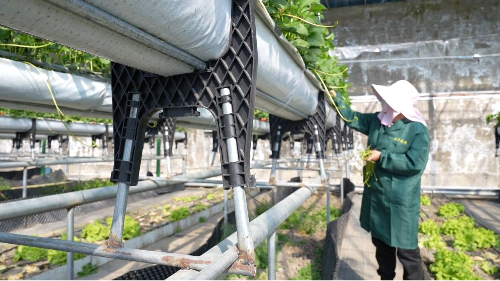 村民正在數(shù)字溫室大棚里管護(hù)草莓苗(央廣網(wǎng)發(fā) 同江市融媒體中心供圖)