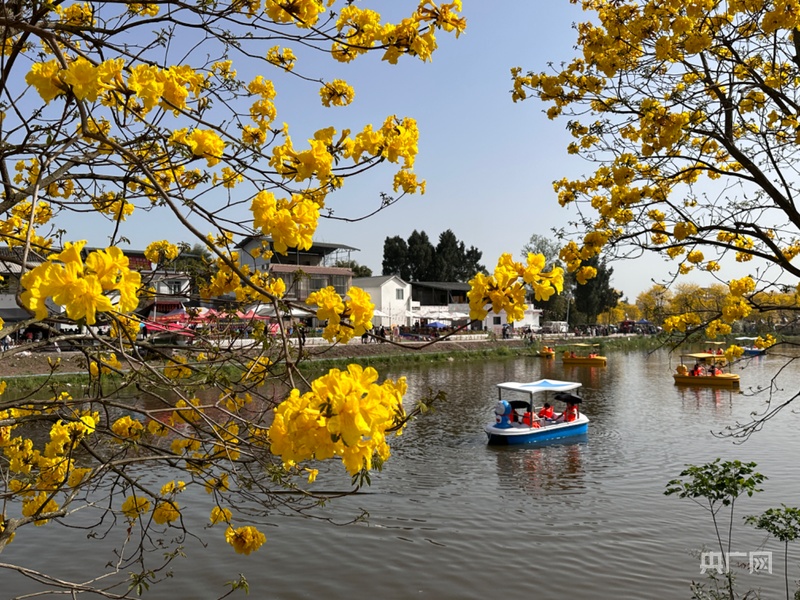 四月芳菲盛,踏青正當(dāng)時(shí)。近日,四川省簡(jiǎn)陽市東麓花溪的千畝黃花風(fēng)鈴木迎來盛花期,金黃花海不僅吸引八方游客紛至沓來,更催生出多元消費(fèi)新場(chǎng)景,讓“鮮花經(jīng)濟(jì)”綻放出獨(dú)特魅力。