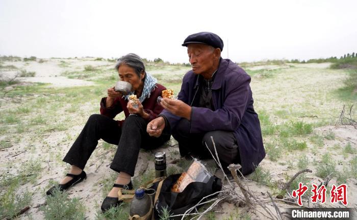 付志周帶著妻子從撿樹枝插栽開始,與風(fēng)沙“死磕”。(資料圖)和靜縣融媒體中心供圖