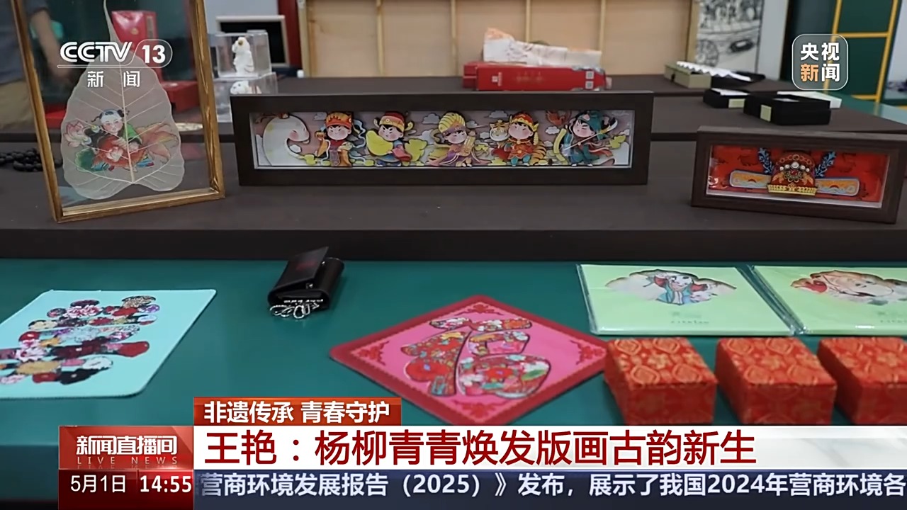 王艷在“老版復(fù)生”過程中,拆解傳統(tǒng)技法,比如畫訣中短胳膊短腿是多短?小鼻子大眼睛的比例怎樣會(huì)更好?她一一詳細(xì)記錄,貢獻(xiàn)了青年傳承人的“新民間經(jīng)驗(yàn)”。如今,古版年畫中的楊柳青元素也被開發(fā)成各式新潮的文創(chuàng)產(chǎn)品,“過年才貼的畫”變成了“身邊常見的畫”,讓年輕的消費(fèi)者愛不釋手。