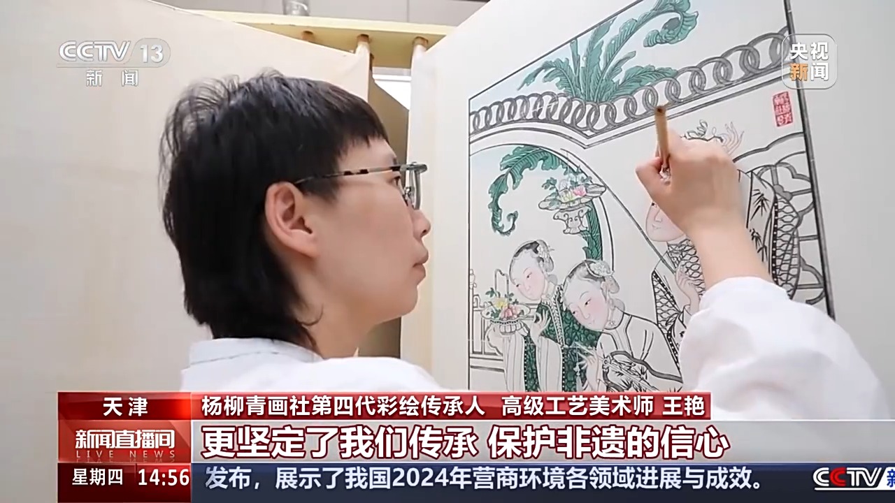 楊柳青畫社第四代彩繪傳承人、高級(jí)工藝美術(shù)師 王艷:人們的喜愛,讓我收獲了更多的文化認(rèn)同感,更堅(jiān)定了我們傳承、保護(hù)非遺的信心,希望我們可以創(chuàng)作出更多具有這個(gè)時(shí)代屬性的新年畫。