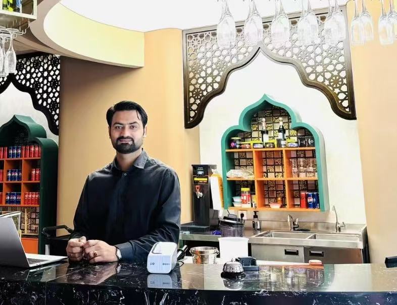 我們在中國的網(wǎng)絡(luò)平臺上都會發(fā)送電子優(yōu)惠券,也有一些排行榜把我們店放上去,所以中國消費者就會特意過來嘗試。我們有時也有學(xué)生折扣、會員卡的活動。得益于中國的‘過境免簽’政策,我們店里有了更多的外國游客,一些外國游客可能不會用電子優(yōu)惠券,我們也有一些實體店的優(yōu)惠活動。最近中國的一些‘促消費’活動我們也參加了,比如在美食節(jié)攤位上展示巴基斯坦美食,讓大家都嘗嘗。對于我們來說,不僅僅宣傳了我們的美食,還可以宣傳巴基斯坦文化。現(xiàn)在我們在成都剛開了一家新店,未來我們還想在西安也開一家。