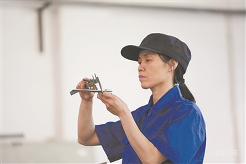 吳園梅在校準(zhǔn)自制的直角尺(央廣網(wǎng)發(fā) 步楊星 攝)