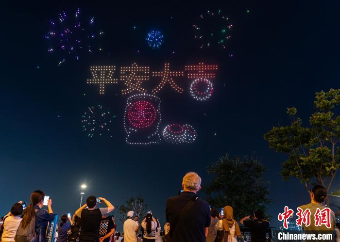 香港旅游發(fā)展局5月1日晚以天后誕、譚公誕及長洲太平清醮三大傳統(tǒng)節(jié)慶為主題,在灣仔海濱舉辦無人機(jī)表演。香港特色民俗“搶包山”比賽場(chǎng)景在夜空出現(xiàn),“搶包山”搶上了天,引得圍觀人群贊嘆。