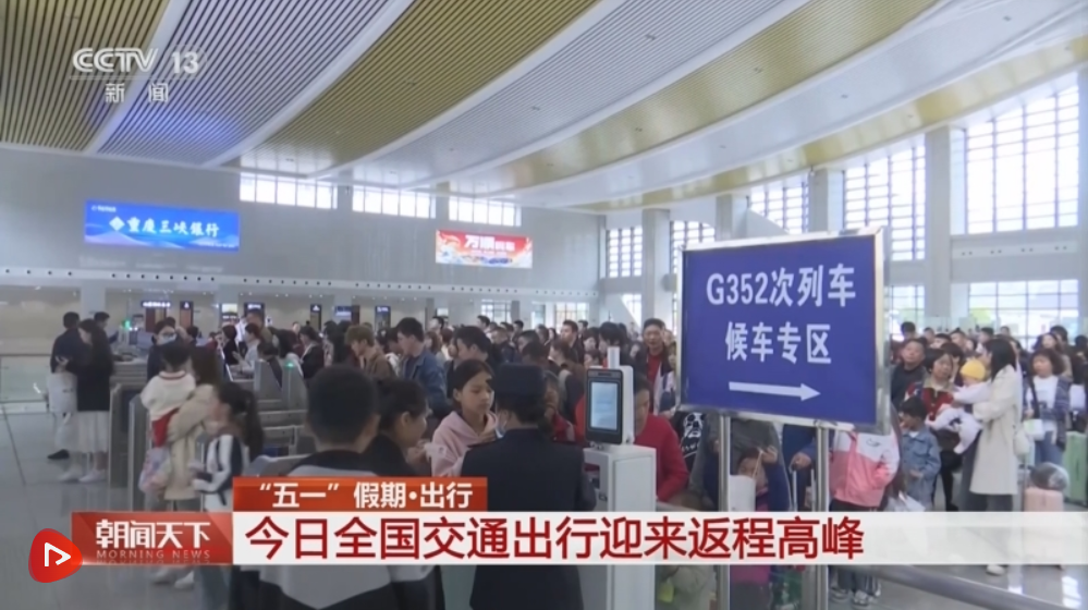 “五一”假期的最后一天,各地迎來返程高峰。記者從交通運(yùn)輸部了解到,5日交通出行保持高位運(yùn)行,全國鐵路預(yù)計(jì)發(fā)送旅客超2000萬人次,各地鐵路部門精心組織客流疏導(dǎo)。公路方面,中長(zhǎng)途返程車流與短途返城車流疊加,預(yù)計(jì)從下午14時(shí)起,各大中城市、火車站、機(jī)場(chǎng)周邊道路通行壓力較大。