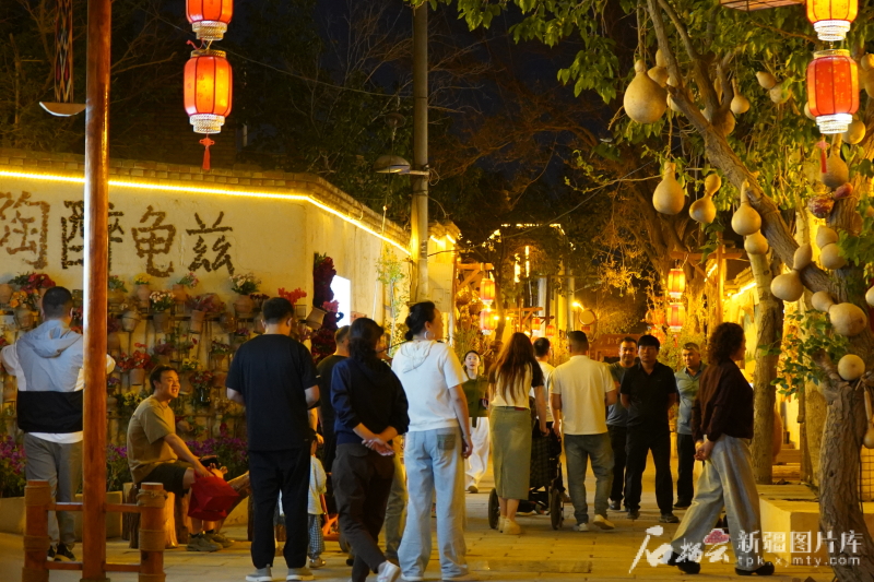 “五一”假期,庫(kù)車市熱鬧的夜晚。 孟文靜攝
