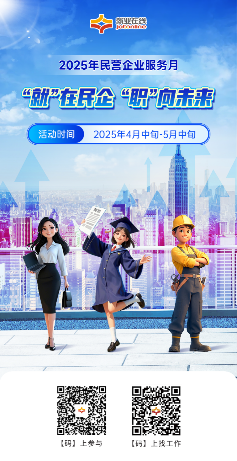 為支持民營經(jīng)濟發(fā)展,促進高質(zhì)量充分就業(yè),按照人力資源社會保障部等6部門關于開展2025年民營企業(yè)服務月活動安排,“就業(yè)在線”平臺開展2025年民營企業(yè)服務月線上招聘求職服務活動,助力民營企業(yè)招聘用工和廣大勞動者求職就業(yè)。