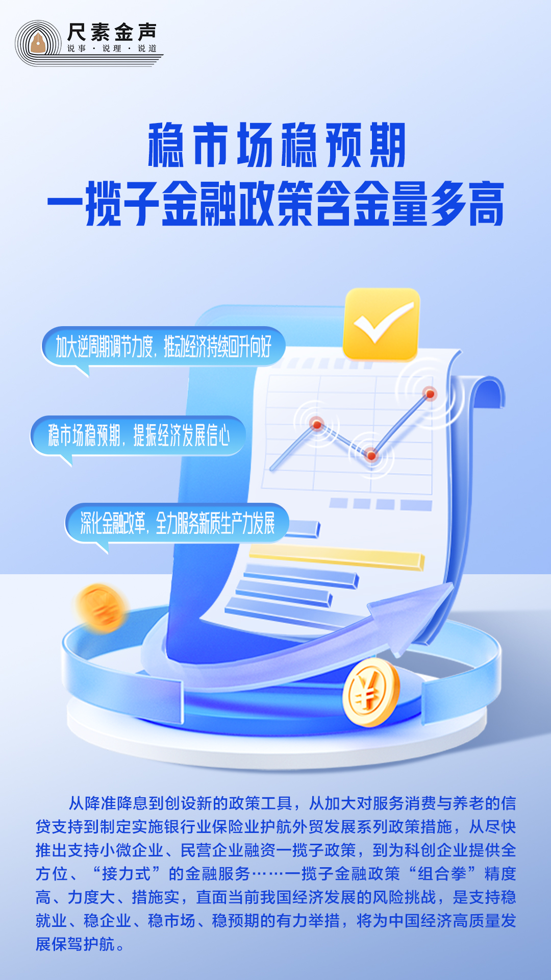 從降準降息到創(chuàng)設新的政策工具,從加大對服務消費與養(yǎng)老的信貸支持到制定實施銀行業(yè)保險業(yè)護航外貿發(fā)展系列政策措施,從盡快推出支持小微企業(yè)、民營企業(yè)融資一攬子政策,到為科創(chuàng)企業(yè)提供全方位、“接力式”的金融服務……一攬子金融政策“組合拳”精度高、力度大、措施實,直面當前我國經濟發(fā)展的風險挑戰(zhàn),是支持穩(wěn)就業(yè)、穩(wěn)企業(yè)、穩(wěn)市場、穩(wěn)預期的有力舉措,將為中國經濟高質量發(fā)展保駕護航。
