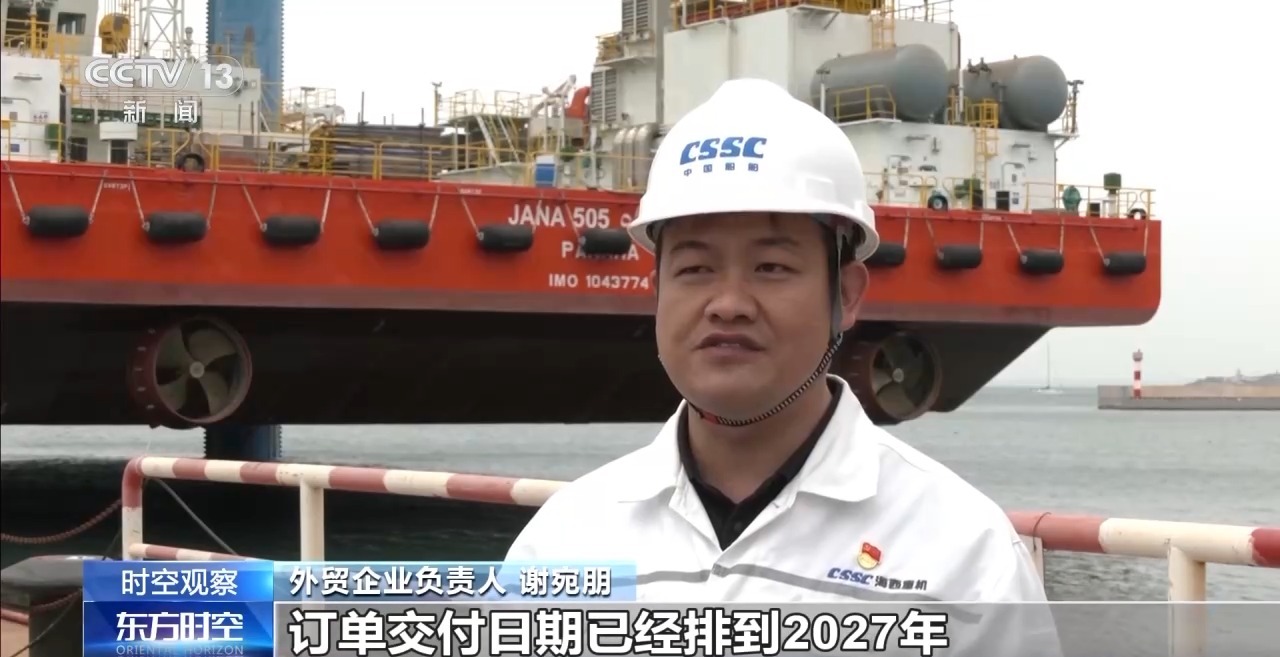 外貿(mào)企業(yè)負責人 謝宛朋:目前,在建外貿(mào)平臺及港機設備40余臺,訂單交付日期已經(jīng)排到2027年。