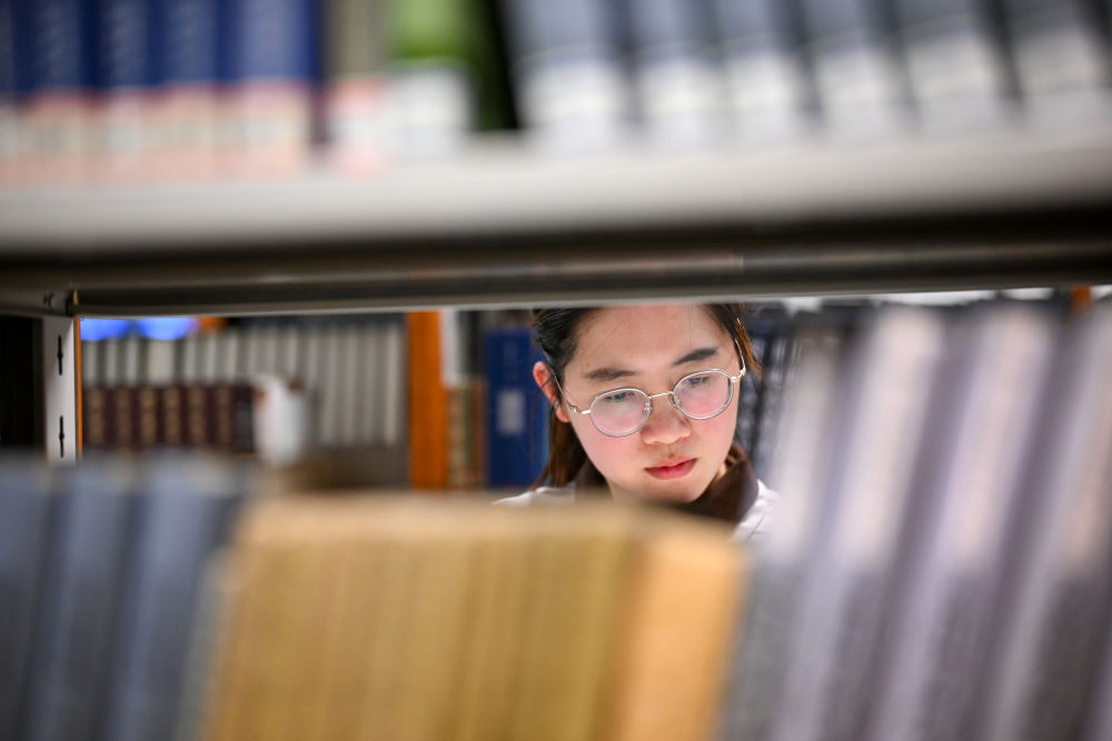 5月7日,在南開大學(xué)津南校區(qū),楊雅麗在歷史學(xué)院采薇閣(資料室)查閱資料。