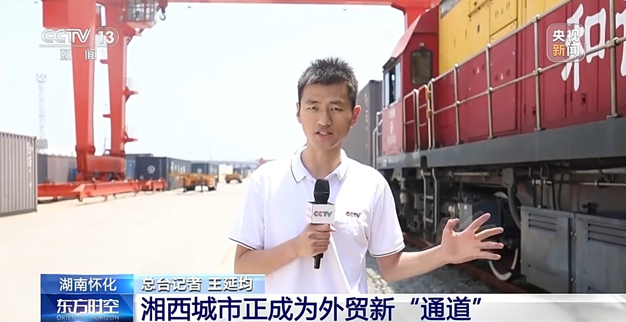 記者走進懷化國際陸港,這里正一片忙碌,龍門吊起降不停,來自湘西南地區(qū)的貨物在這里轉運,一節(jié)節(jié)裝好的貨箱被運至專列,即將發(fā)往海外。