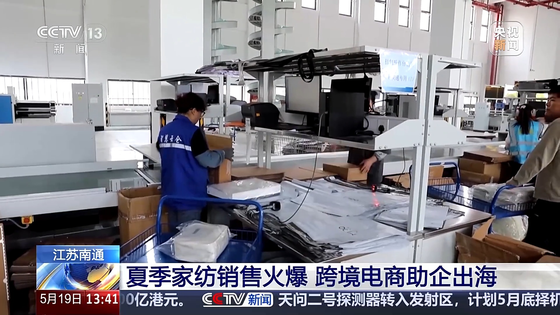 在位于江蘇南通市海門區(qū)的中國(guó)疊石橋國(guó)際家紡城的這家外貿(mào)型家紡企業(yè),九成業(yè)務(wù)布局海外,美國(guó)市場(chǎng)訂單占比高達(dá)70%至80%。據(jù)這家企業(yè)負(fù)責(zé)人介紹,之前因?yàn)楦哧P(guān)稅,企業(yè)一度暫停發(fā)貨。而在中美關(guān)稅政策調(diào)整的第二天,就有不少美國(guó)客戶發(fā)來(lái)郵件,紛紛要求繼續(xù)出貨,現(xiàn)在美國(guó)客戶數(shù)量基本沒有少,還新接到一個(gè)美國(guó)大客戶的訂單。