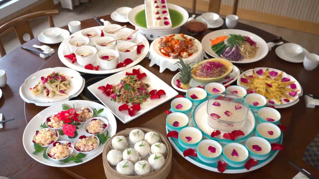 “今天很榮幸能吃到一桌都是用玫瑰花制作的菜肴,特別浪漫?!庇慰完愂缛A說,“每一道菜都非常精致,真的是一種‘舌尖上的享受’?!?/p>