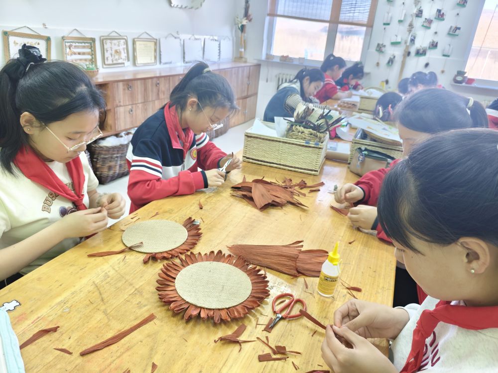 統(tǒng)部小學(xué)有一片十余畝的勞動(dòng)試驗(yàn)田,種滿了玉米。每到秋收時(shí)節(jié),任慧敏就帶著同學(xué)們到田里收集玉米皮,曬干加工成做手工的材料。任慧敏說(shuō):“學(xué)校開(kāi)設(shè)了玉米皮粘貼畫社團(tuán)課程,用農(nóng)村隨處可見(jiàn)的玉米皮制作粘貼畫,很受學(xué)生們歡迎?!?/p>