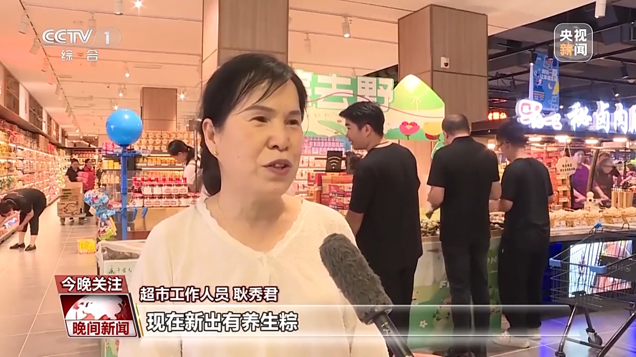 超市工作人員 耿秀君:現(xiàn)在新出有養(yǎng)生粽,低糖低脂,適合老年人吃,玫瑰蜜棗、桂花蜜棗都適合年輕人吃,賣得比較快。