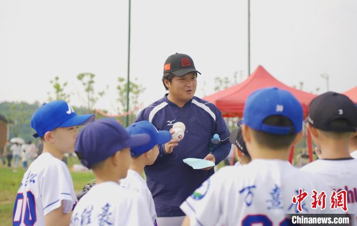 5月25日,在江西省南昌市的棒球場上,臺青吳軍平正在訓(xùn)練球員。吳敏 攝