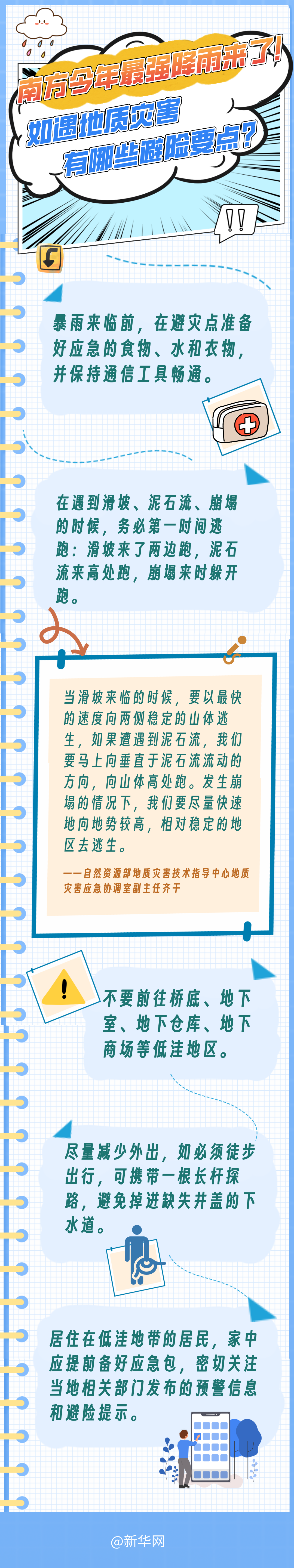 中央氣象臺(tái)消息,預(yù)計(jì)5月27日至29日,我國南方將出現(xiàn)今年以來最強(qiáng)降雨過程,并與前期強(qiáng)降雨區(qū)高度疊加,暴雨災(zāi)害風(fēng)險(xiǎn)高。新一輪強(qiáng)降雨過程范圍廣、累計(jì)降水量大,地質(zhì)災(zāi)害風(fēng)險(xiǎn)不容忽視。強(qiáng)降雨可能引發(fā)哪些地質(zhì)災(zāi)害?地質(zhì)災(zāi)害發(fā)生前,有哪些征兆?如遇地質(zhì)災(zāi)害,有哪些避險(xiǎn)要點(diǎn)?