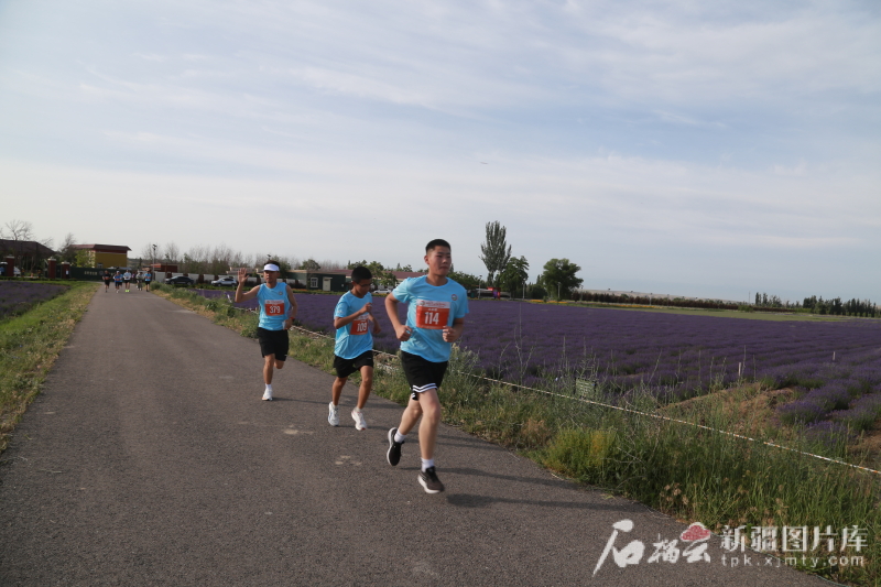 5月31日,霍城縣“2025蘇韻伊情·霞路相逢(霞2·芳香霍城)商學(xué)院越野接力賽”開跑。圖為參賽選手跑過一片薰衣草園。石榴云/新疆日報(bào)記者 宋衛(wèi)國 攝