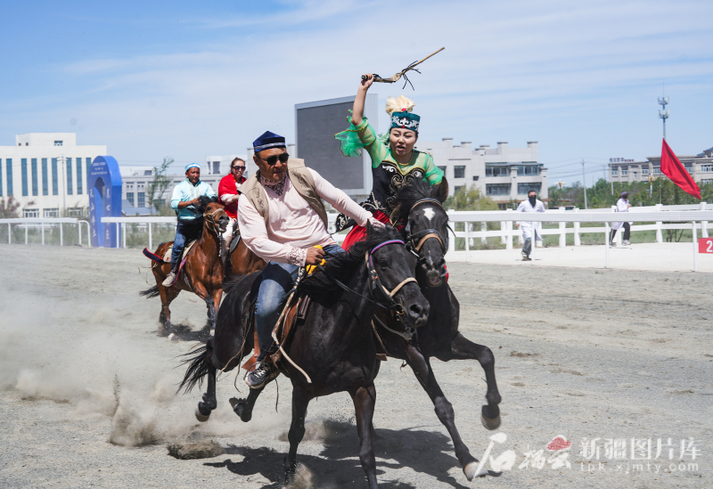 5月31日,中國·新疆第五屆駱駝產(chǎn)業(yè)展暨全疆賽馬大會(huì)在木壘哈薩克自治縣激情啟幕?;顒?dòng)現(xiàn)場在進(jìn)行“姑娘追”表演。常誼誼 攝