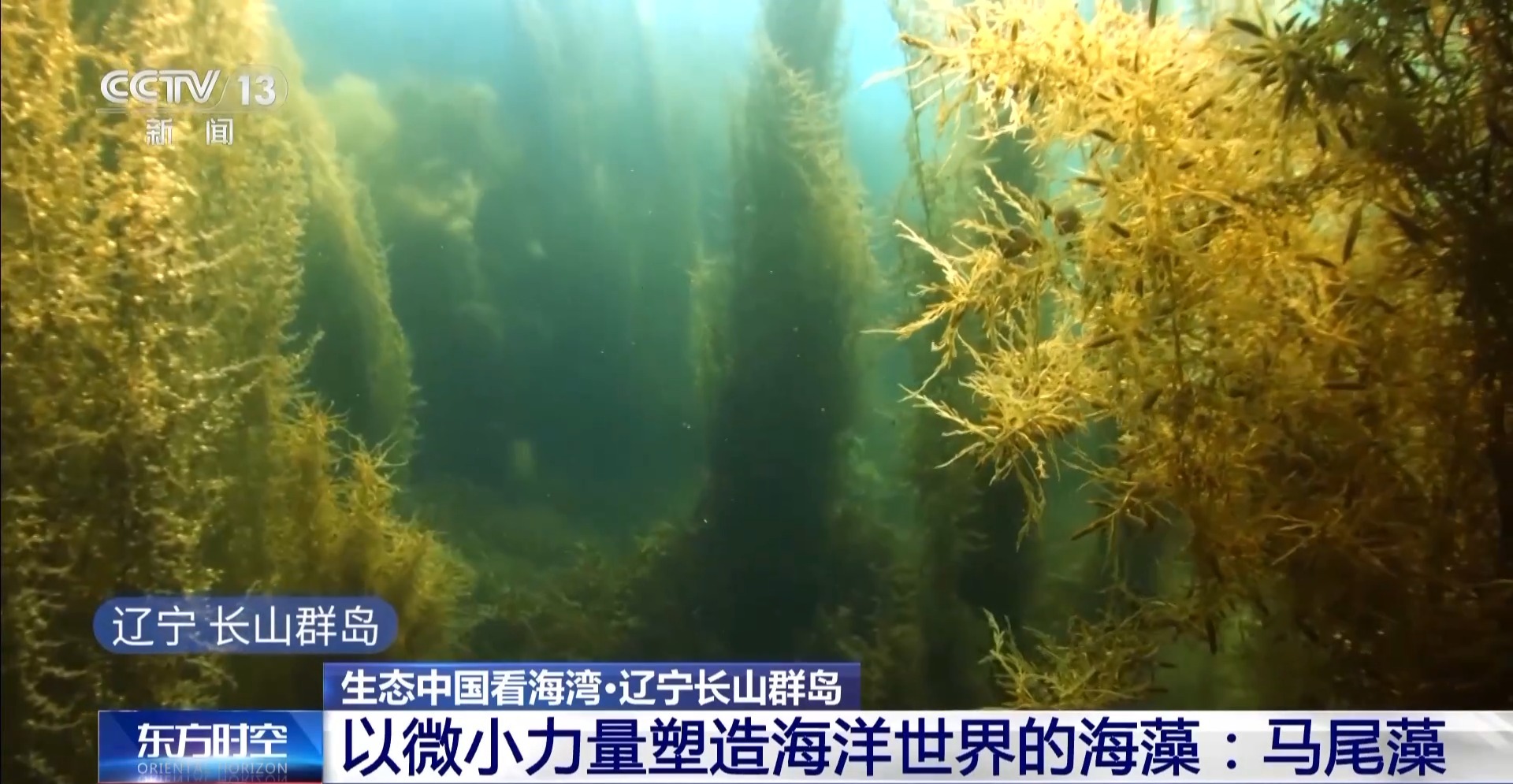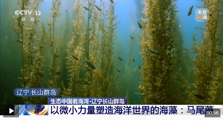在遼寧長山群島有一種叫馬尾藻的海洋藻類,它們一束束地纏繞在一起,最長的可達十幾米。我國是馬尾藻主要產(chǎn)地之一,藻類群落不僅是眾多海洋生物的棲息地,還在全球碳循環(huán)、海洋生態(tài)平衡中扮演著重要角色。在海水中,它的顏色是深黃綠色。
