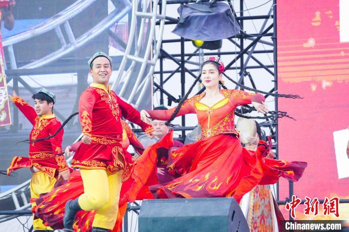 環(huán)塔拉力賽事舉辦期間,新疆多地上演民族歌舞表演。楊子涵 攝