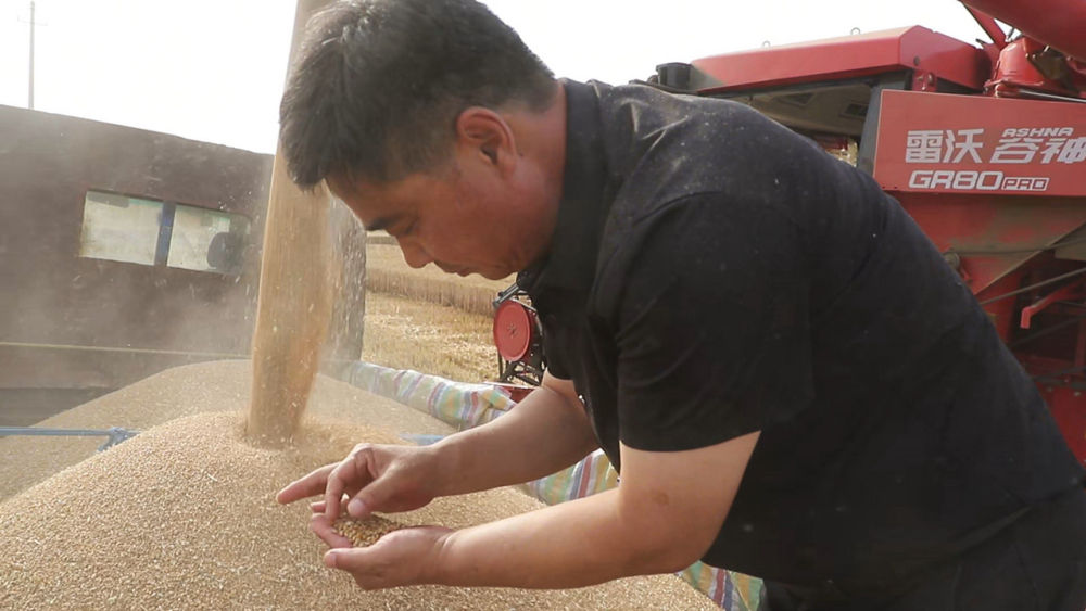 “今年我種植了優(yōu)質(zhì)小麥1200多畝。根據(jù)目前收割的情況來看,今年又是個豐收年,大概的產(chǎn)量就是600公斤以上?!痹诤幽鲜∩糖鹗辛簣@區(qū)李莊鎮(zhèn)潘堂村,當(dāng)?shù)胤N糧大戶閆照峰的喜悅溢于言表。