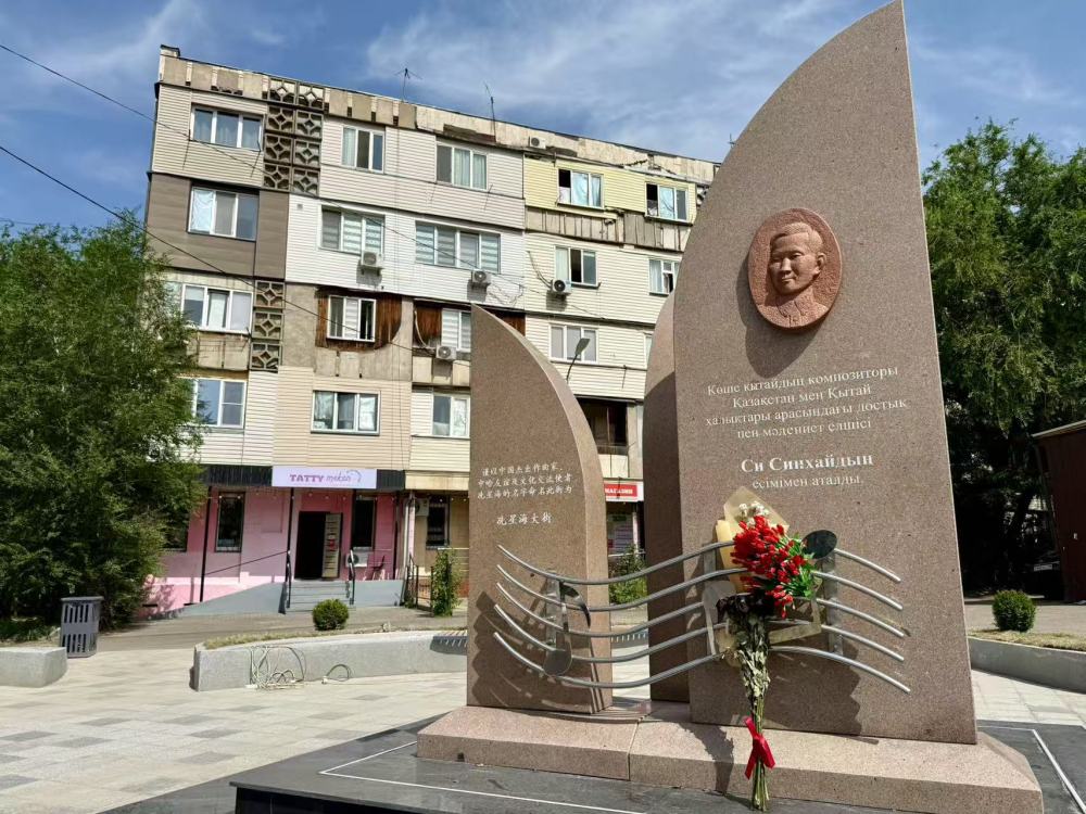 在阿拉木圖,冼星海大街同拜卡達(dá)莫夫大街位置相鄰。在冼星海大街一端,冼星海紀(jì)念碑巍然矗立,以中哈俄三種文字寫(xiě)道:“謹(jǐn)以中國(guó)杰出作曲家、中哈友誼及文化交流使者冼星海的名字命名此街為冼星海大街”。