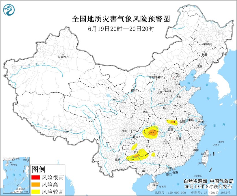 自然資源部與中國氣象局同一時間聯(lián)合發(fā)布地質災害氣象風險預警,預計19日20時至20日20時,安徽西部、河南南部、湖北東北部和西南部、湖南西北部、廣西北部、重慶東部、貴州西部和南部、云南東部等地部分地區(qū)發(fā)生地質災害的氣象風險較高(黃色預警)。其中,安徽西部、河南南部、湖北東北部和西南部、湖南西北部、廣西北部、貴州南部等地部分地區(qū)發(fā)生地質災害的氣象風險高(橙色預警),需做好地質災害防御工作。