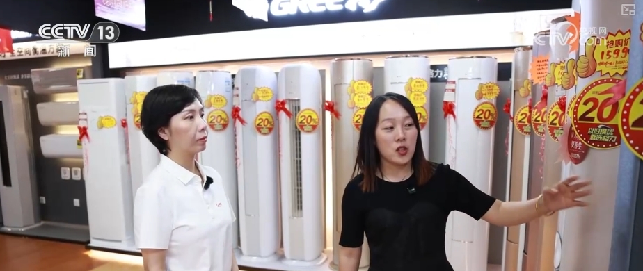 店主介紹,當(dāng)前消費(fèi)者“以舊換新”需求旺盛。6月份以來,店內(nèi)銷售量環(huán)比增長了33%,空調(diào)、冰箱等清涼家電成為消費(fèi)主力。