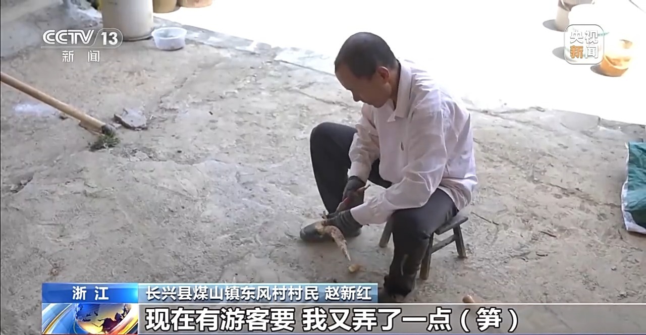 長興縣煤山鎮(zhèn)東風(fēng)村村民 趙新紅:感覺很好賣,現(xiàn)在有游客要,我又弄了一點(diǎn)筍,把好一點(diǎn)的挑出來,價(jià)格比批發(fā)上門收好多了。