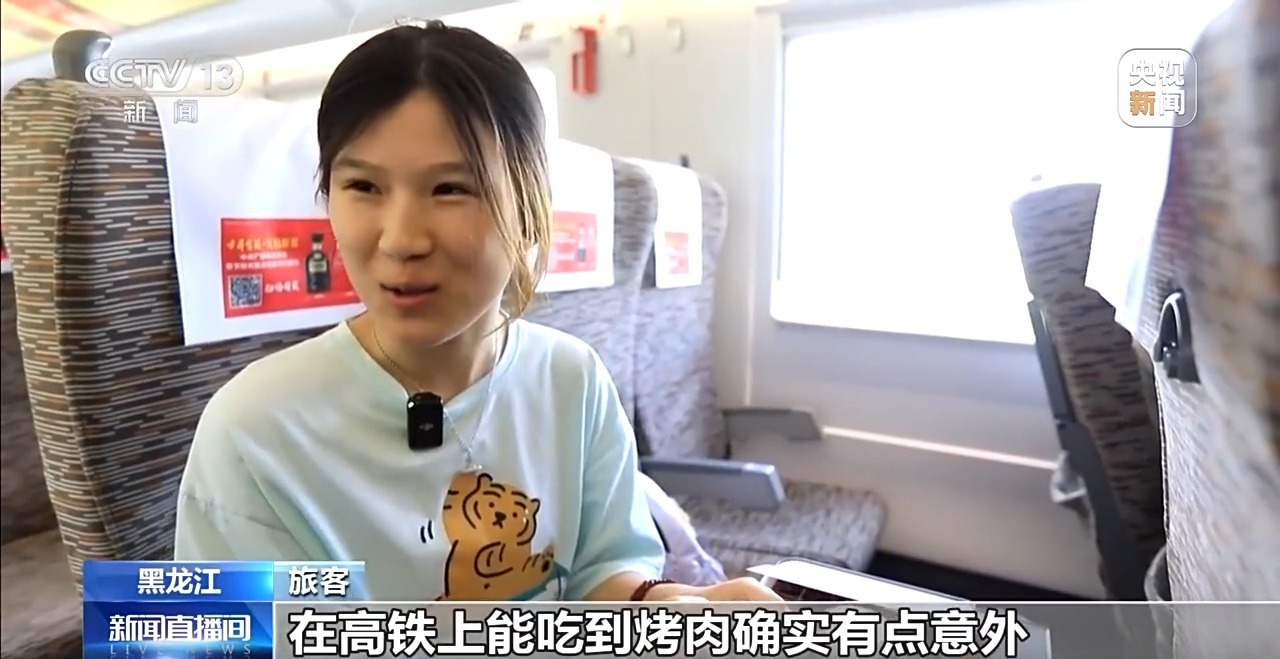 旅客:在高鐵上能吃到烤肉確實(shí)有點(diǎn)意外,非常好吃。