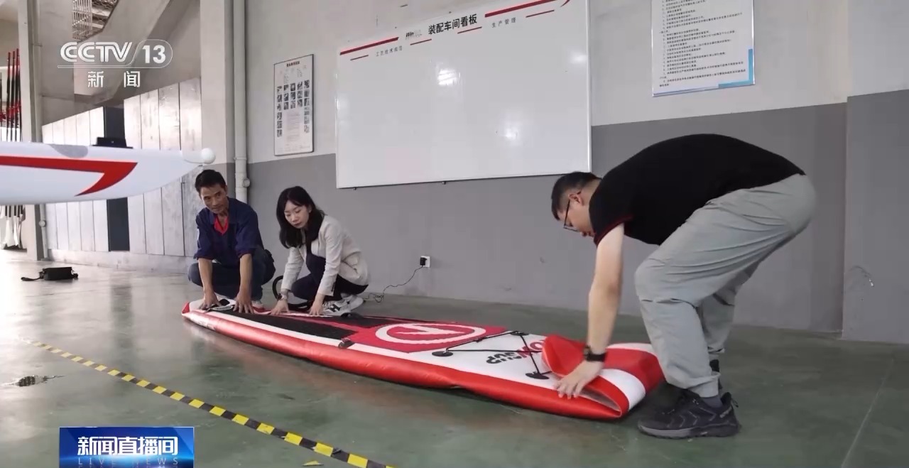 某水上用品制造企業(yè)負(fù)責(zé)人 金音:我們是用航空航天的一個(gè)工藝技術(shù)來制作賽艇,首創(chuàng)的一次成型的技術(shù),還有一些結(jié)構(gòu)上面的一些突破,排水系統(tǒng)的發(fā)明專利。