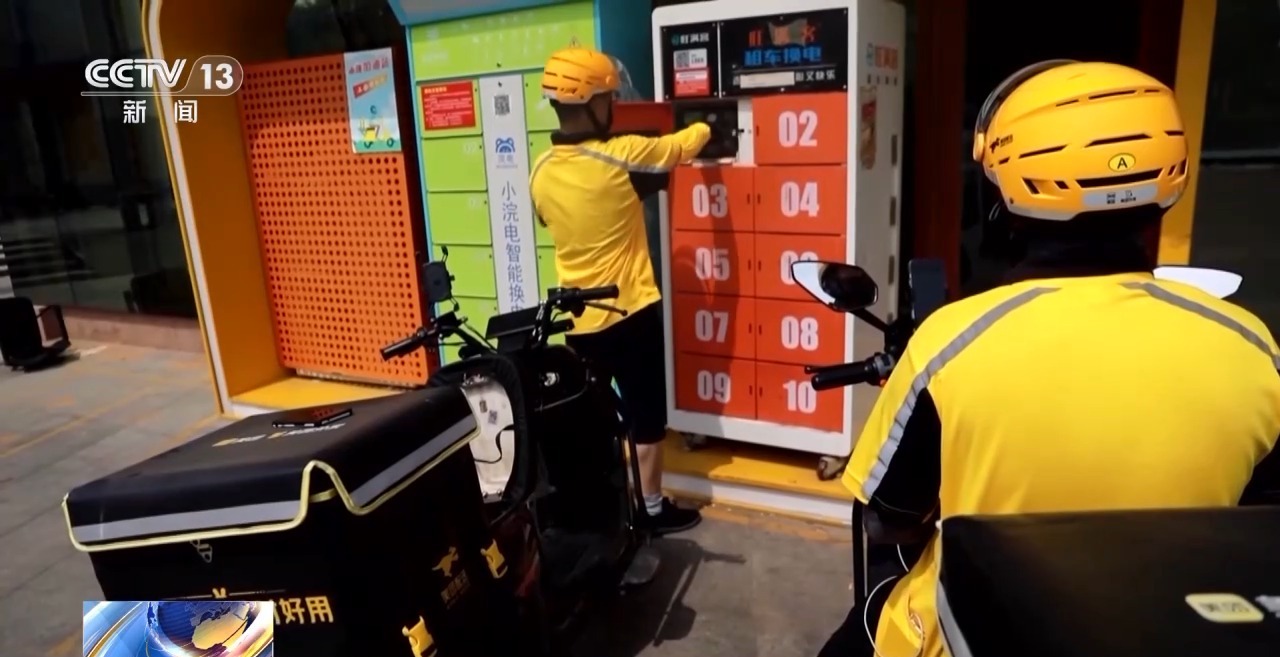 外賣員 崔鳳洋:給我們提供了很方便的換電站,我們如果高峰期沒有電了,可以來這里換電,如果中午非常熱,感到身體有點難受可以到這來,也提供解暑藥品。