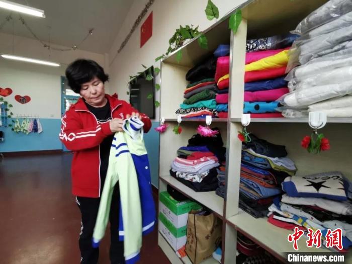 吾吉整理捐贈(zèng)的衣物?!垥悦?攝