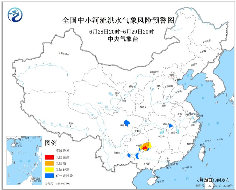 中央氣象臺6月28日18時發(fā)布中小河流洪水氣象風(fēng)險預(yù)警: