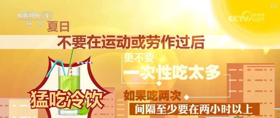 醫(yī)生建議,夏日不要在運(yùn)動(dòng)或勞作過后猛吃冷飲,更不要一次性吃太多,如果吃兩次,間隔至少要在兩小時(shí)以上。有偏頭痛等頭痛史的人或體溫調(diào)節(jié)中樞尚未發(fā)育完全的兒童慎食冷飲。