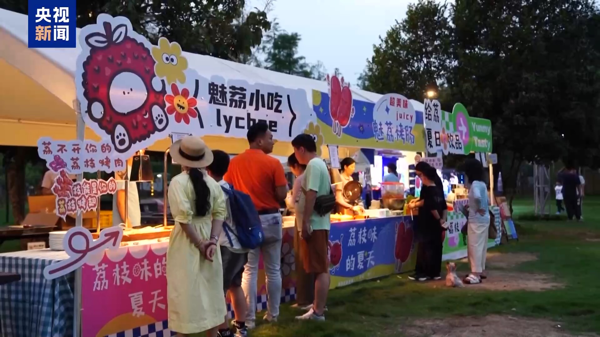 同樣因荔枝而火爆的還有廣東,游客不僅能現摘現吃,實現“荔枝自由”,包含博物館探訪、古驛道漫步、夏夜音樂節(jié)等內容的荔枝主題游線路,吸引游客專程前來。荔枝精釀、荔枝護膚品、荔枝木燒鵝等“荔枝周邊”產品成為最新爆款。