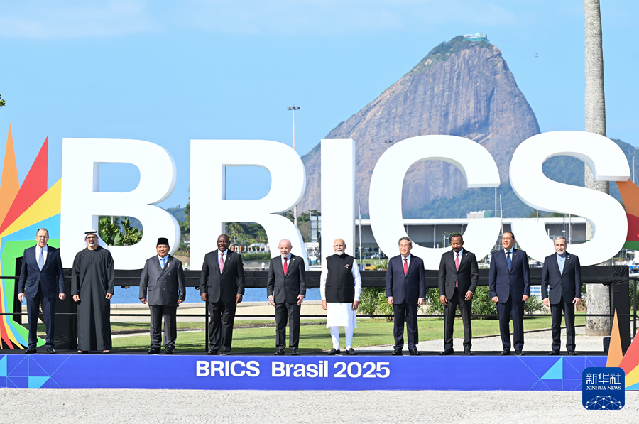 當?shù)貢r間7月6日,國務(wù)院總理李強在里約熱內(nèi)盧出席金磚國家領(lǐng)導(dǎo)人第十七次會晤第一階段會議,就“和平與安全、全球治理改革”議題發(fā)表講話。這是與會領(lǐng)導(dǎo)人集體合影。新華社記者 李響 攝