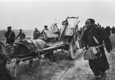 香城固戰(zhàn)役中群眾向前線運(yùn)送物資。中國(guó)人民抗日戰(zhàn)爭(zhēng)紀(jì)念館供圖