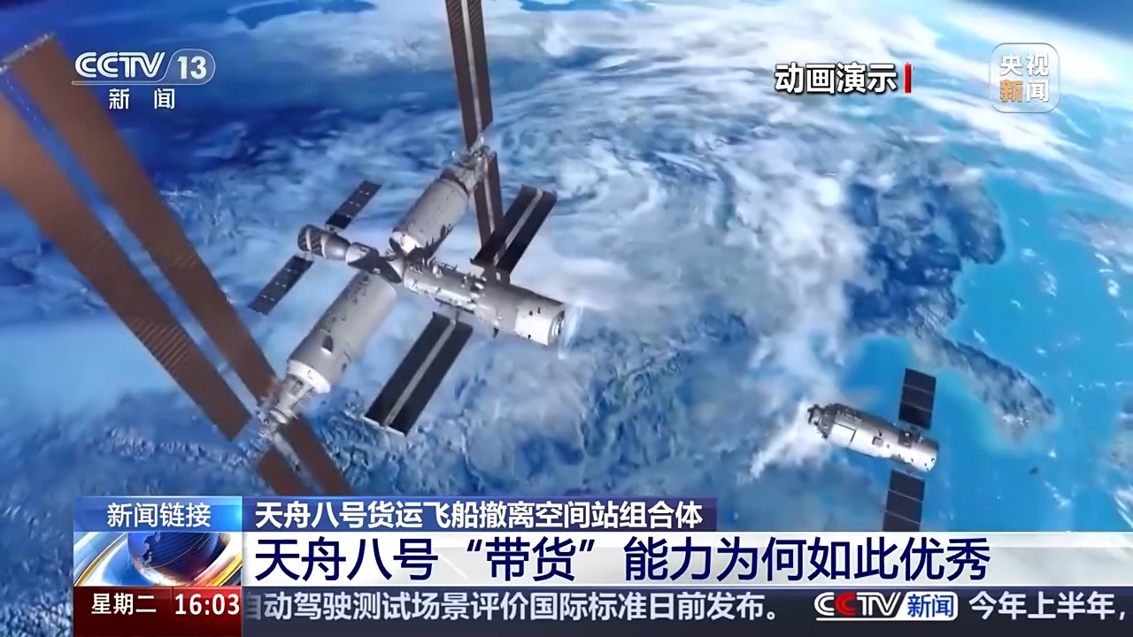 天舟八號(hào)貨運(yùn)飛船采用3小時(shí)自主快速交會(huì)對(duì)接方案,專家介紹,這是未來(lái)天舟飛船與空間站常態(tài)化的對(duì)接模式。