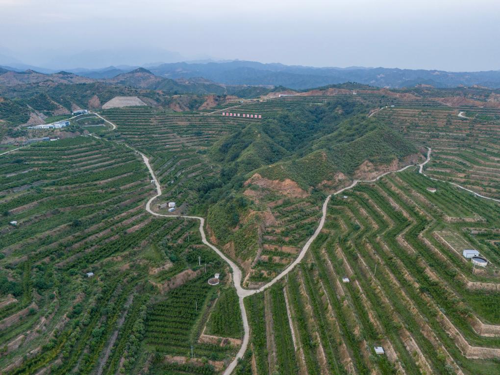 這是7月4日拍攝的阜平縣高效林果產(chǎn)業(yè)示范園區(qū)(無(wú)人機(jī)照片)。新華社記者 李鑫 攝