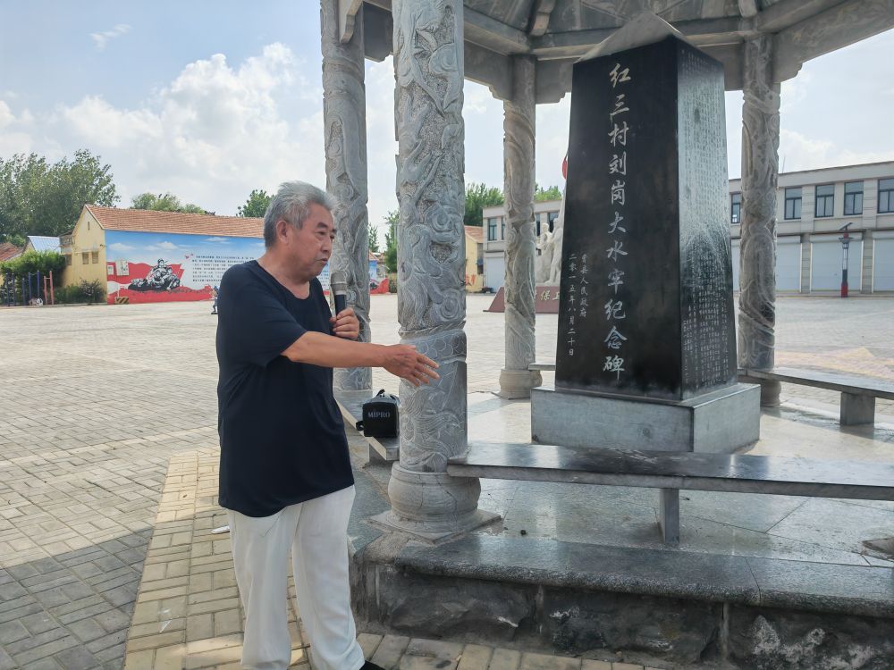 “1943年,日軍突襲劉崗村,嚴刑逼迫村民說出八路軍的秘密。眼看村民一個個被殺,冀魯豫邊區(qū)八路軍戰(zhàn)士秦興體站了出來,向侵略者高聲反抗,義無反顧獻出了生命……”在菏澤市曹縣韓集鎮(zhèn)劉崗村,74歲的義務講解員劉全義站在劉崗大水牢紀念碑前,動情講述著“紅三村”的抗日故事。