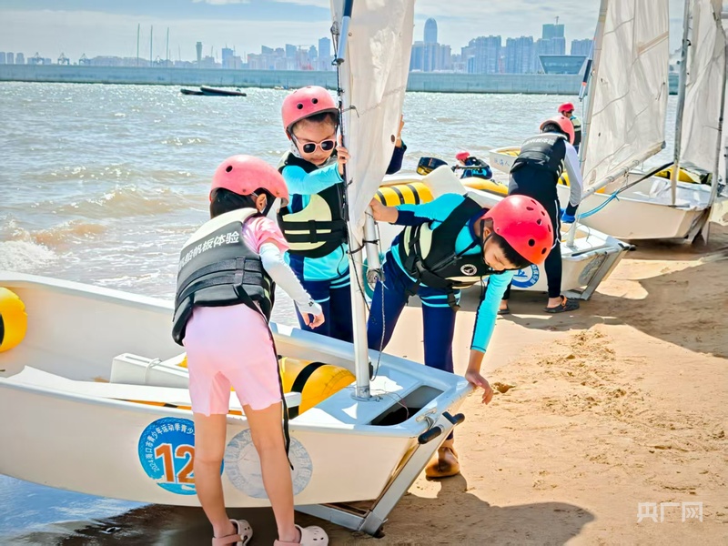 孩子們體驗(yàn)帆船運(yùn)動(dòng)(央廣網(wǎng)記者 蔡文娟 攝)