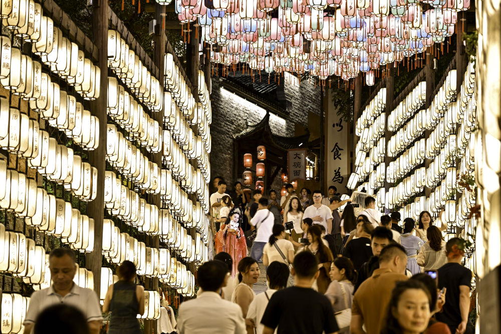 7月11日,游客在位于江西省上饒市廣信區(qū)望仙鄉(xiāng)的望仙谷景區(qū)游覽。新華社記者 劉金海 攝