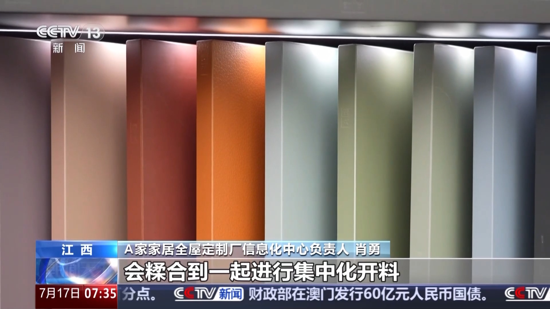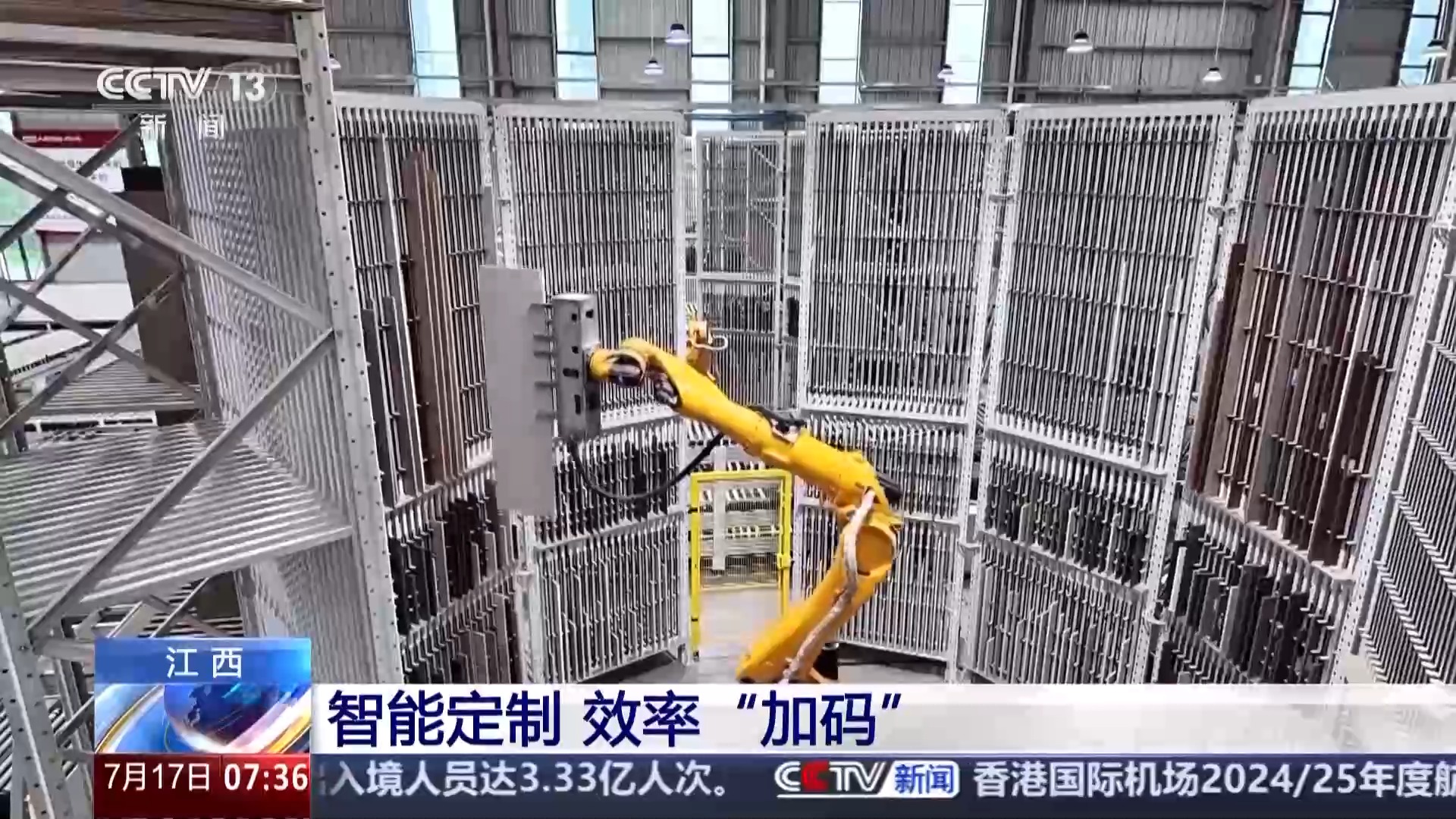 總臺(tái)央視記者 張琪:分揀機(jī)械臂正將加工好的木板快速存放在書本架上,這一個(gè)單元的書架可以存放480片部件板,打造10個(gè)柜子,夠一個(gè)家庭使用。