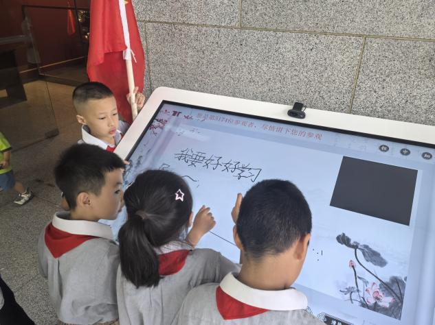 參觀完紀(jì)念館后,孩子們?cè)陔娮恿粞园嫔狭粞裕ㄍ趵蚶?攝)