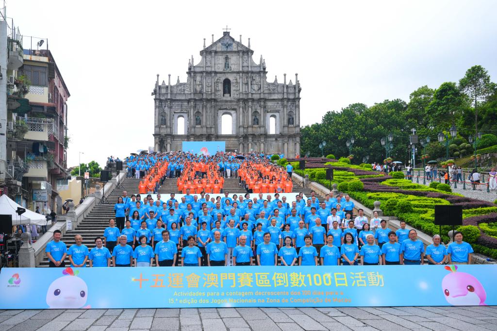 這是8月1日在澳門(mén)拍攝的第十五屆全國(guó)運(yùn)動(dòng)會(huì)倒計(jì)時(shí)100天慶祝活動(dòng)現(xiàn)場(chǎng)。新華社發(fā)(張金加攝)